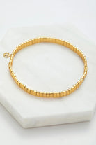 Introducing our Gold Tile Bracelet – a contemporary piece that effortlessly blends simplicity and style. Adorned with sleek gold tile beads, this bracelet exudes understated elegance. Its minimalist design makes it a versatile accessory, perfect for adding a touch of modern sophistication to any ensemble. Elevate your wrist wear with the subtle charm of the Gold Tile Bracelet, a go-to piece for effortlessly chic styling.