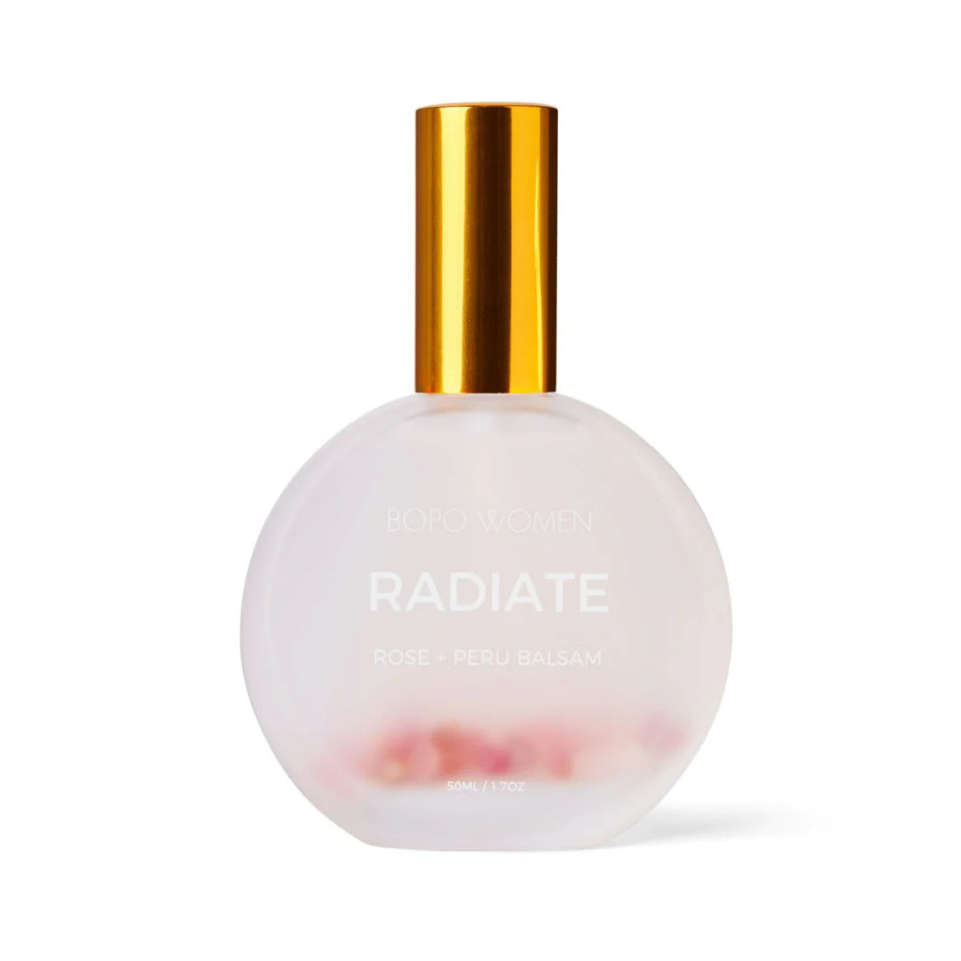 Let sparks fly and indulge in the sweet and spicy scent of Radiate. Starring passionate florals, delicate rose damascena adds sweet pink notes with long-lasting depth, while fruity and flowery ylang-ylang softens the balsamic woodiness of sandalwood. Peppery sharp ginger adds a warm fiery element and smoky Peru balsam a touch of vanilla, wood and cinnamon.